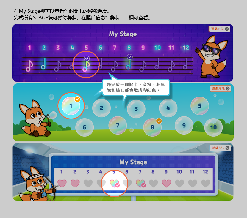 學習紀錄包括Animation,eBook,動畫兒歌,小測驗,填字遊戲等學習內容。小遊戲不屬於學習內容記錄範圍。